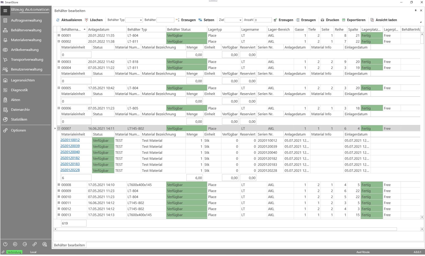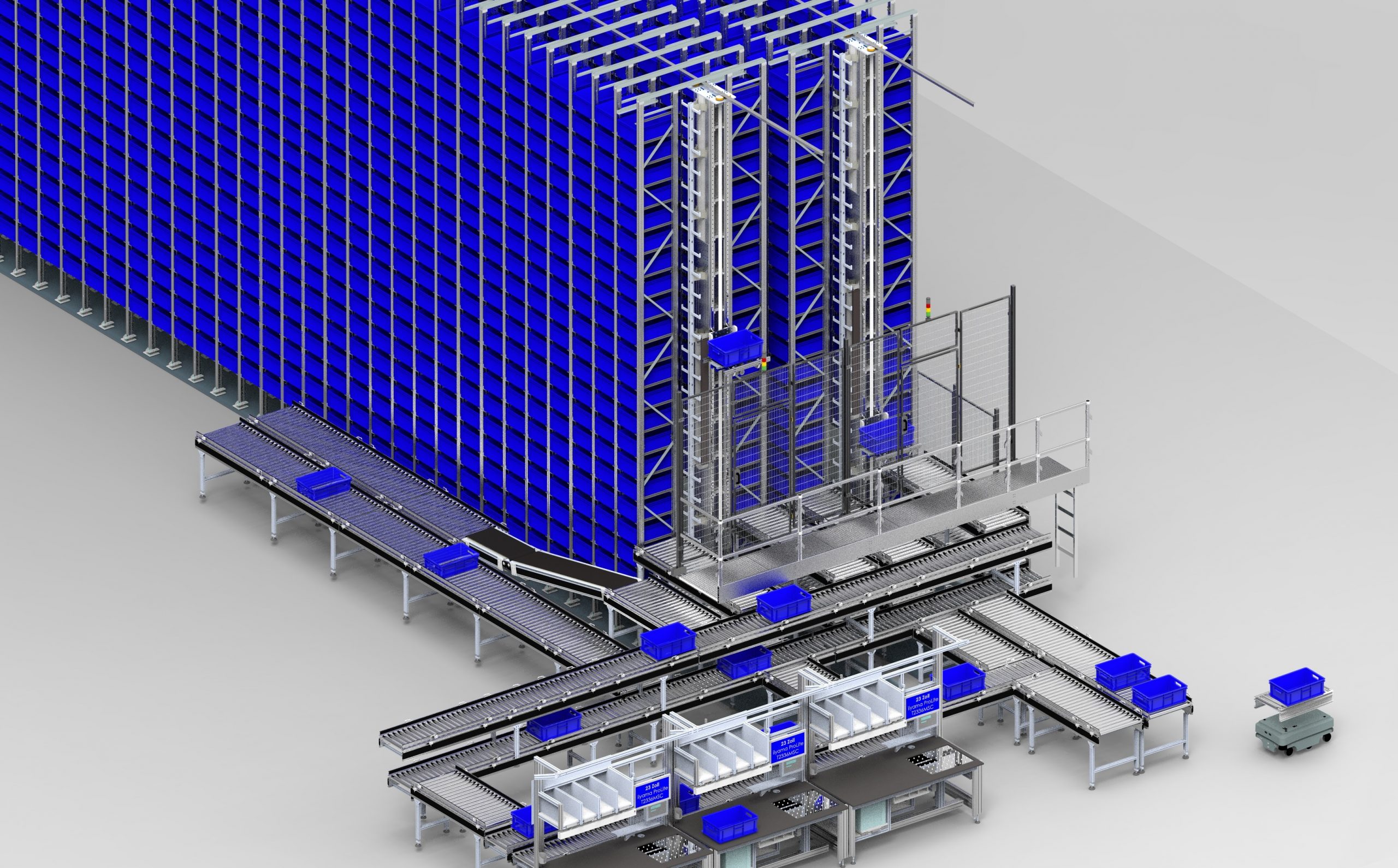 Artikel in Behälter, Kartons oder Tablaren platzsparend und effzient einlagern.