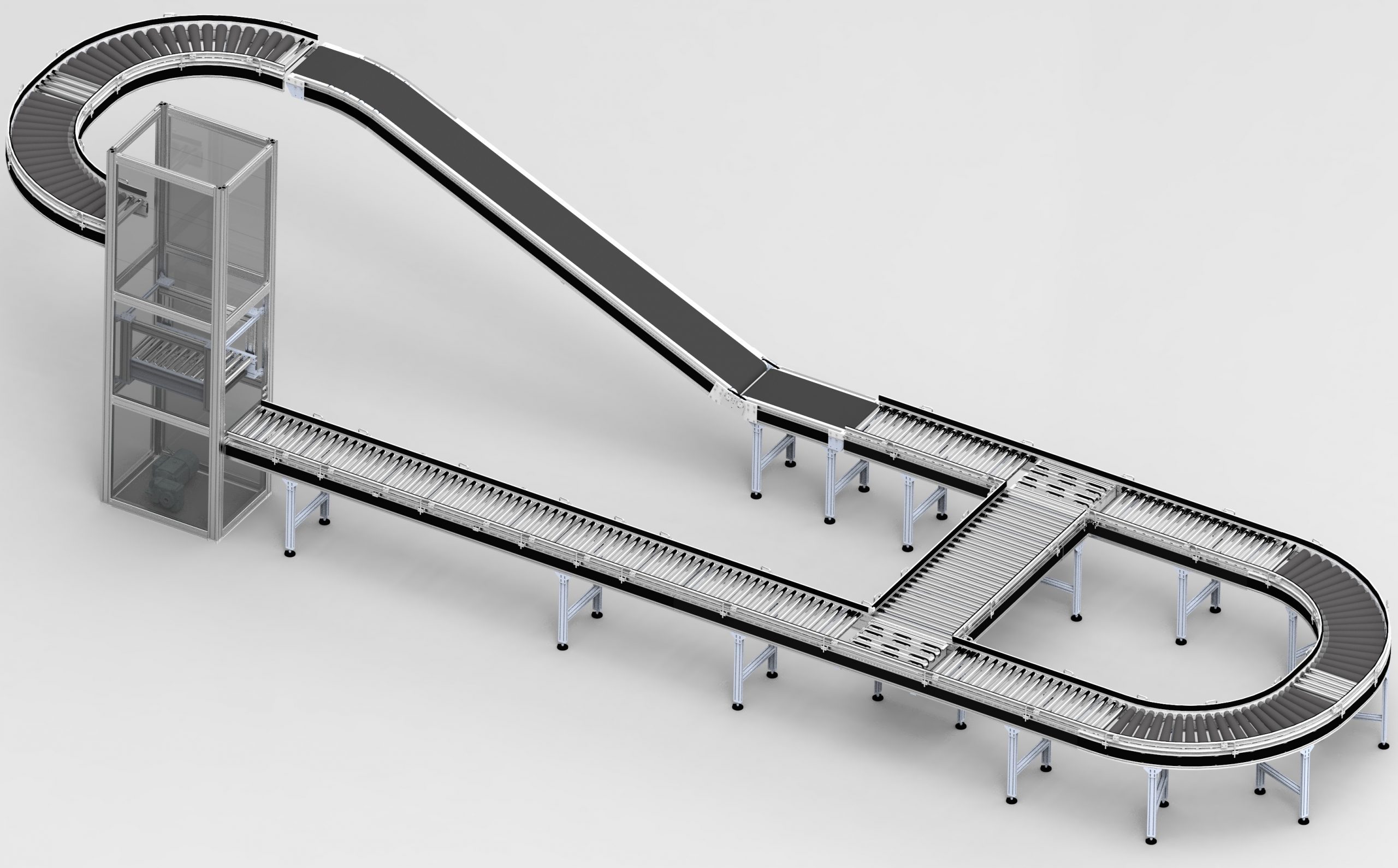 Fördertechnik für Behälter, Kartons, Tablare und Werkstückträger.